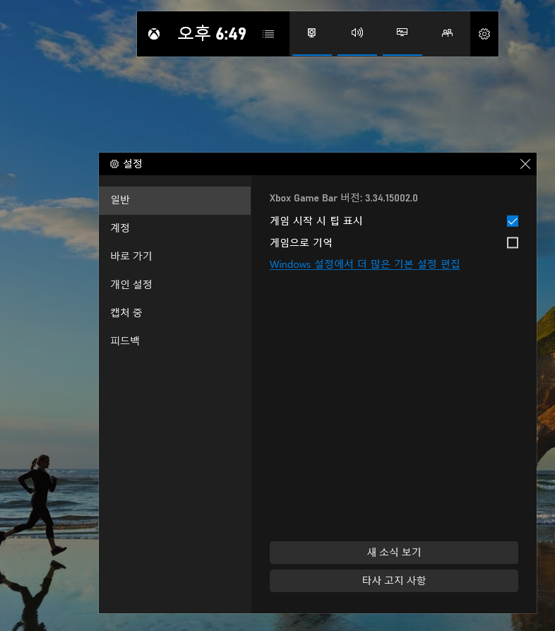 또는 게임이나 프로그램 실행중에 윈도우 + G 단축키를 누르면 된다.