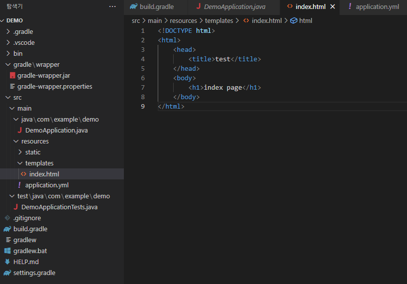 그리고 추가했던 타임리프까지 활용해 볼 수 있도록 index.html 파일도 약간의 수정을 했다.