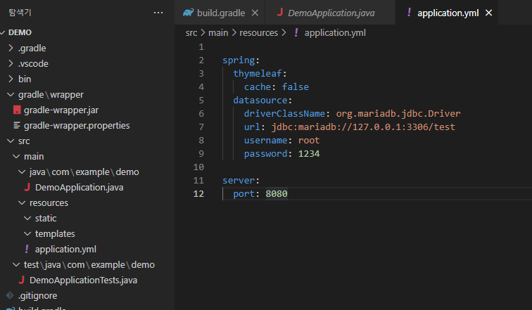 우선 application.properties 파일을 application.yml 으로 변경하고 다음과 같이 입력했다.