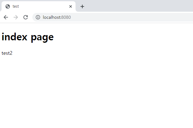 index.html 파일의 '기본값' 이라는 문구는 출력되지 않고 test2가 출력되는 것을 확인할 수 있다.